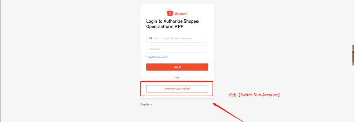 4.跳转到Shopee登录页面之后,点击【Switch to Sub Account】