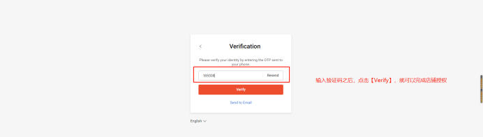 6.点击【Log In】绑定店铺的手机会收取到一条验证码,输入验证码点击【Verify】