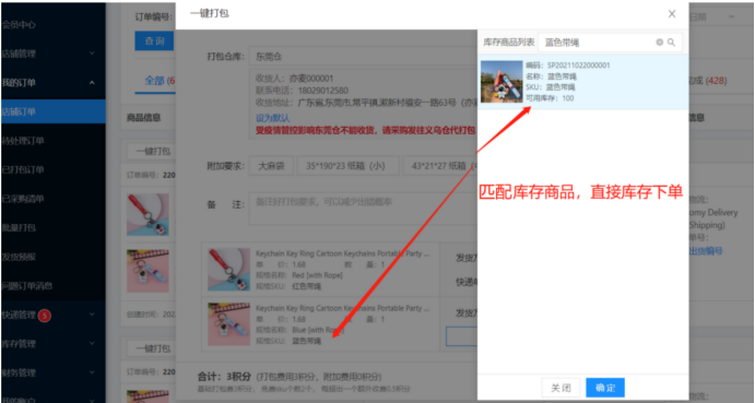 找到对应的待发货shopee订单,点击【一键打包】,在弹出对应的打包页面上,输入对应的采购发货信息提交至仓库打包